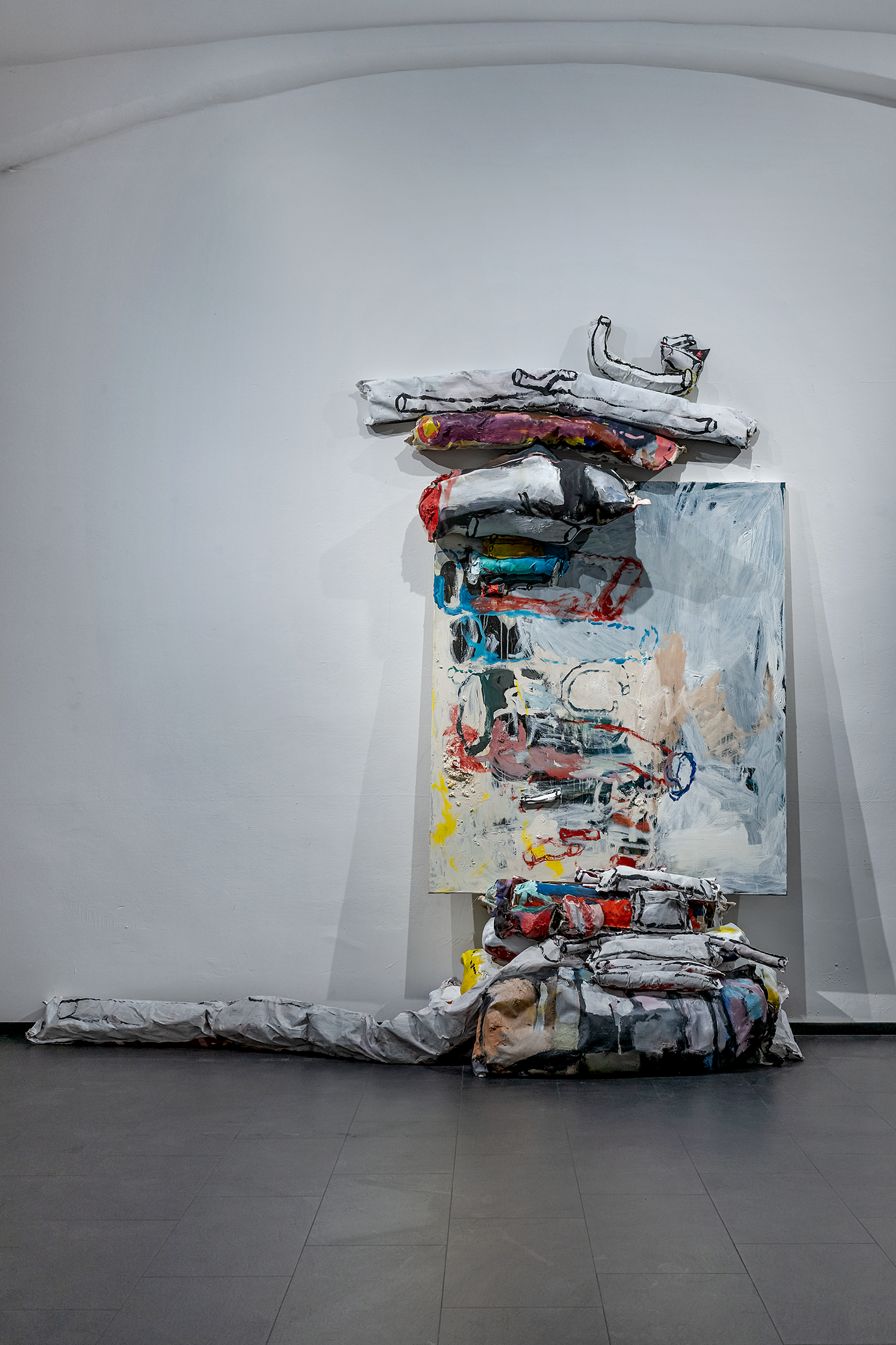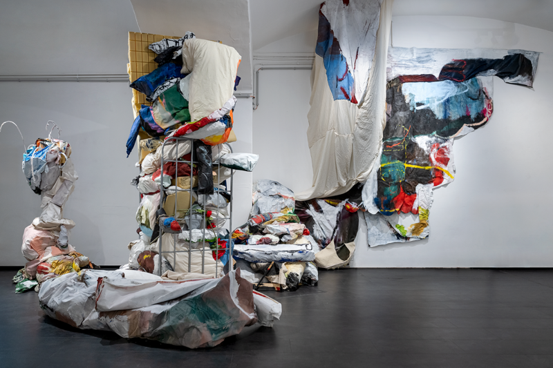 The artist treats her own works as if they were foreign material: stacking, wedging, knotting them, pushing them into corners, allowing some to become partially inaccessible. The exhibition space becomes a place in progress, suspended halfway between warehouse and display, where things are kept, displaced, and reconfigured. The project reflects on archiving, memory, and the quiet failure of order, asking what lingers in a practice over time and what resists being resolved. It is an attempt to take the incidental, the overlooked, and the unfinished seriously, as material, as atmosphere, and as part of an open, continually shifting artistic process.