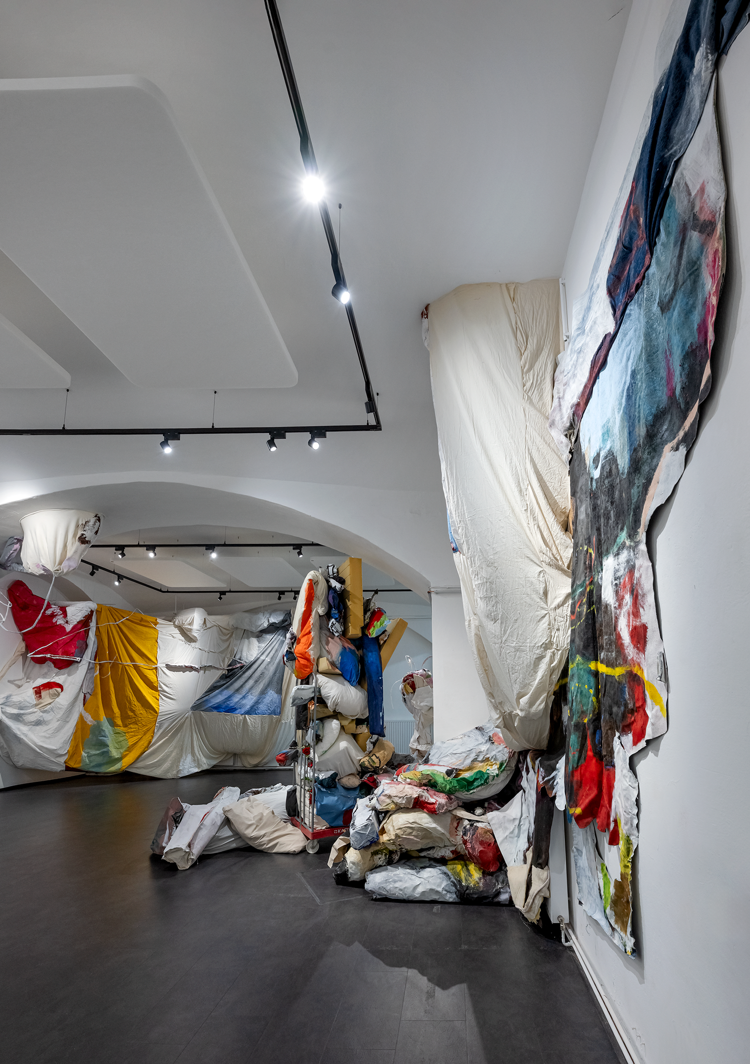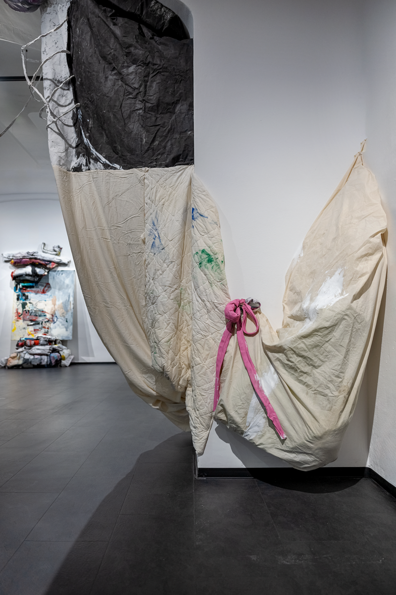 The artist treats her own works as if they were foreign material: stacking, wedging, knotting them, pushing them into corners, allowing some to become partially inaccessible. The exhibition space becomes a place in progress, suspended halfway between warehouse and display, where things are kept, displaced, and reconfigured. The project reflects on archiving, memory, and the quiet failure of order, asking what lingers in a practice over time and what resists being resolved. It is an attempt to take the incidental, the overlooked, and the unfinished seriously, as material, as atmosphere, and as part of an open, continually shifting artistic process.